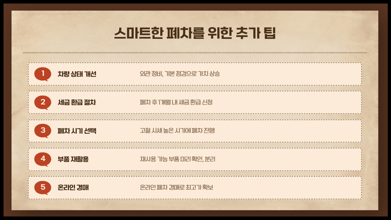 자동차 등록 말소: 폐차 후 1개월 이내에 반드시 진행해야 합니다.