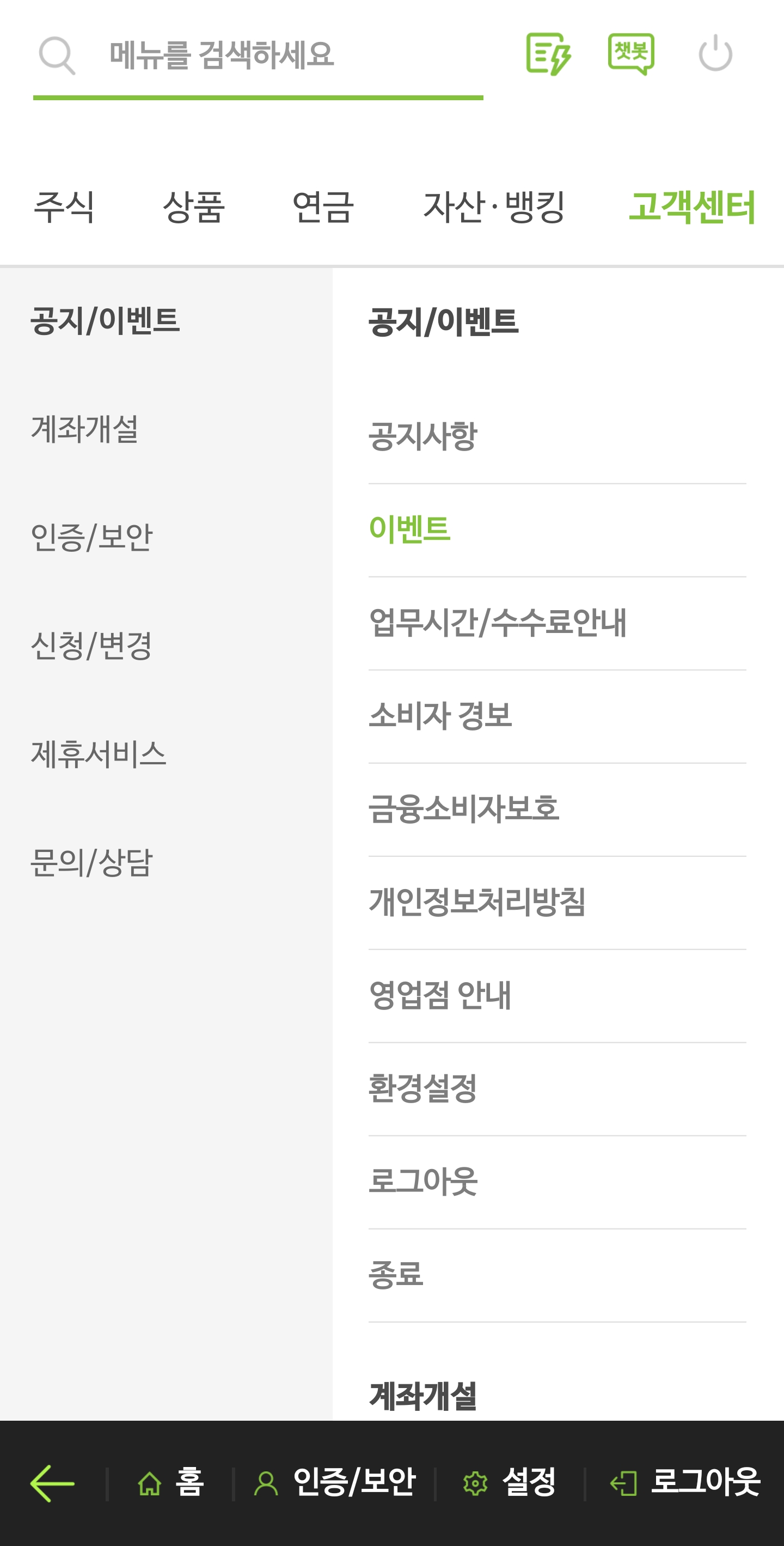 고객센터를 -> 공지/ 이벤트를 선택합니다.