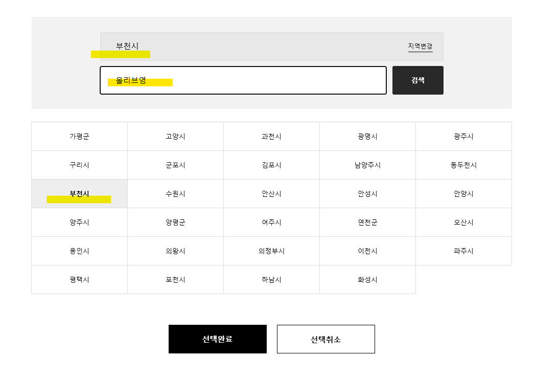 2. 지역을 선택합니다. (예: 부천시)